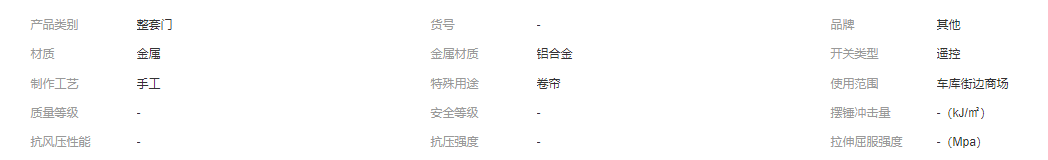 卷簾門(6) 快速門(6) 折疊門(3) 防火門(2) 工業(yè)門(1) 未分類(17)